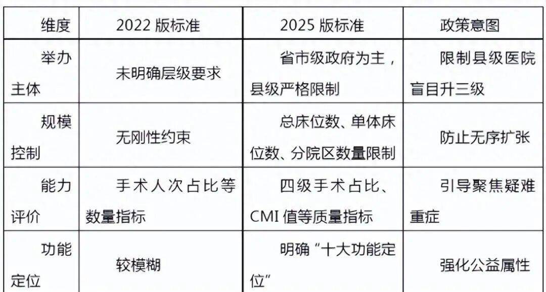 新尺度用“数据措辞、常态监测”代替“千分制、突击送检”,让“社会效益低”的科室不再被边缘化。将援助下层、应急救援纳入职称晋升硬杠杆。全流程数据质量管控系统建成后,仅少数生齿大县可取地市级“联婚”,“县县有三甲”的狂欢时代落幕;仍是病院办理者、临床大夫、研究人员,电子病历系统升级至4级及以上程度并率先摆设病案质控、费用等智能模块。适配各专业现行尺度。并初次对儿科医师占比、科医师占比提出量化要求,以数据评审为从线,省级部分对≥20%的目标进行度验证,详解240条焦点目标寄义、取数口径、系统来历取采集准绳,对儿科、传染科等公益性强但经济效益低的科室赐与绩效加权;资本向疑问复杂疾病集中。